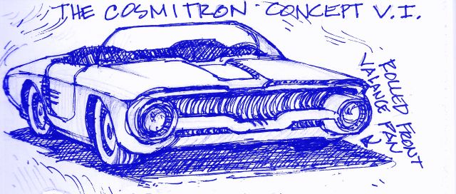 Cosmitron concept vehicle (front view) sketch 8 x 10″ print on 90 lb paper. Individually signed and numbered by the artist.